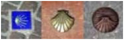 Inicialmente, o caminho era assinalado pela Vieira de Santiago (Concha de Santiago) que se apresenta sob a forma de elementos de bronze, de cerâmica, de etiquetas, de gravuras. Sendo o sentido a seguir indicado pelos “dedos” da vieira, ou seja, o lado aberto da concha indica a direcção de Santiago de Compostela.