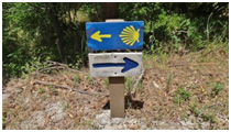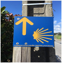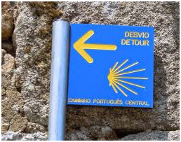 Uma chamada de atenção para as setas azuis que poderão aparecer (que normalmente apontam o sentido contrário) e que são a indicação do Caminho de Fátima, nomeadamente para orientação dos Peregrinos que de Santiago de Compostela se dirigem a Fátima.